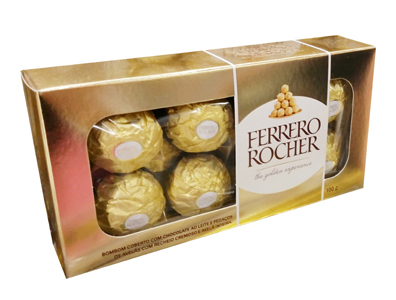 Acompanhamento de produto: Chocolate Ferrero Rocher com 8 Unidades.
