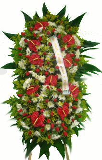 Coroa de Flores composta de Antúrios; Flor Campestre e Tangos. Tamanho Grande. Aprox. 1,80 x 1,80