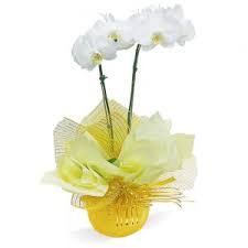 Linda Orquídea Phalaenopsis. 2 Hastes. Decorada em embalagem dupla em tons de amarelo e laço dourado. Presenteie quem vc gosta ou deixe seu ambiente mais alegre com essa linda flor! Planta Replantável.